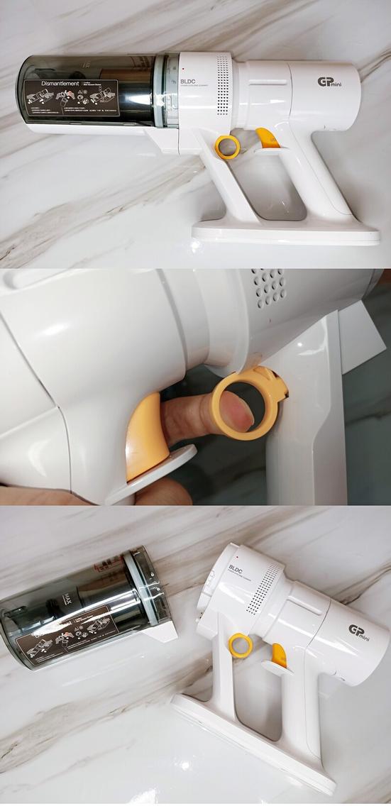 獨立一鍵拆卸電池這個設計也很吸睛!GPmini搭載2600mAh容量的18.5V鋰電池,快充三個半小時,只要把電池單獨拿下來充電就可以搞定,不需要機器搬來搬去,還可以額外加購電池。一顆充飽的電池在地刷吸頭-節能模式狀態下可使用40分鐘、高速模式下14分鐘,而濕拖吸頭的使用時間更是高達50分鐘!