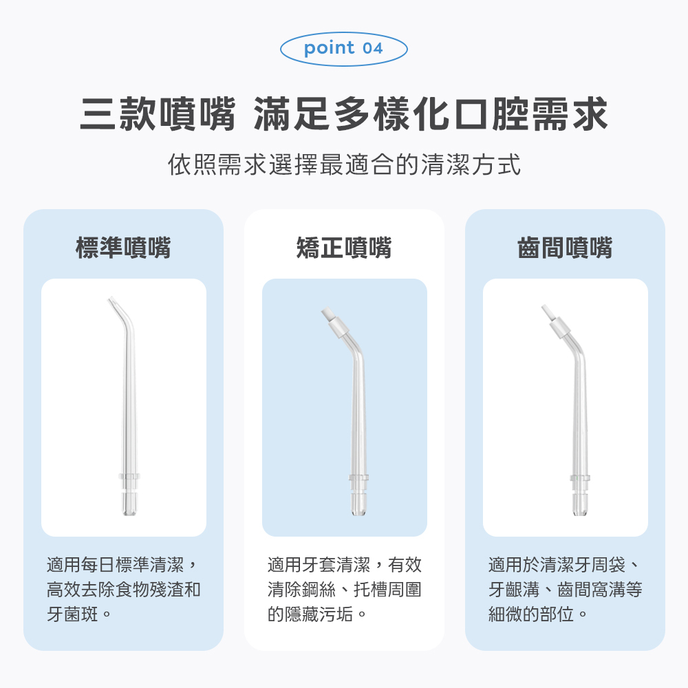 .三款專業噴嘴,細膩照顧不同口腔需求