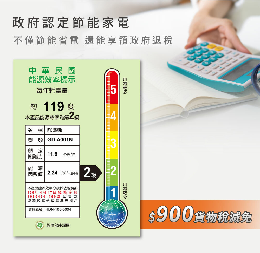 符合除濕機能效二級可至國稅局申請$900貨物稅減免