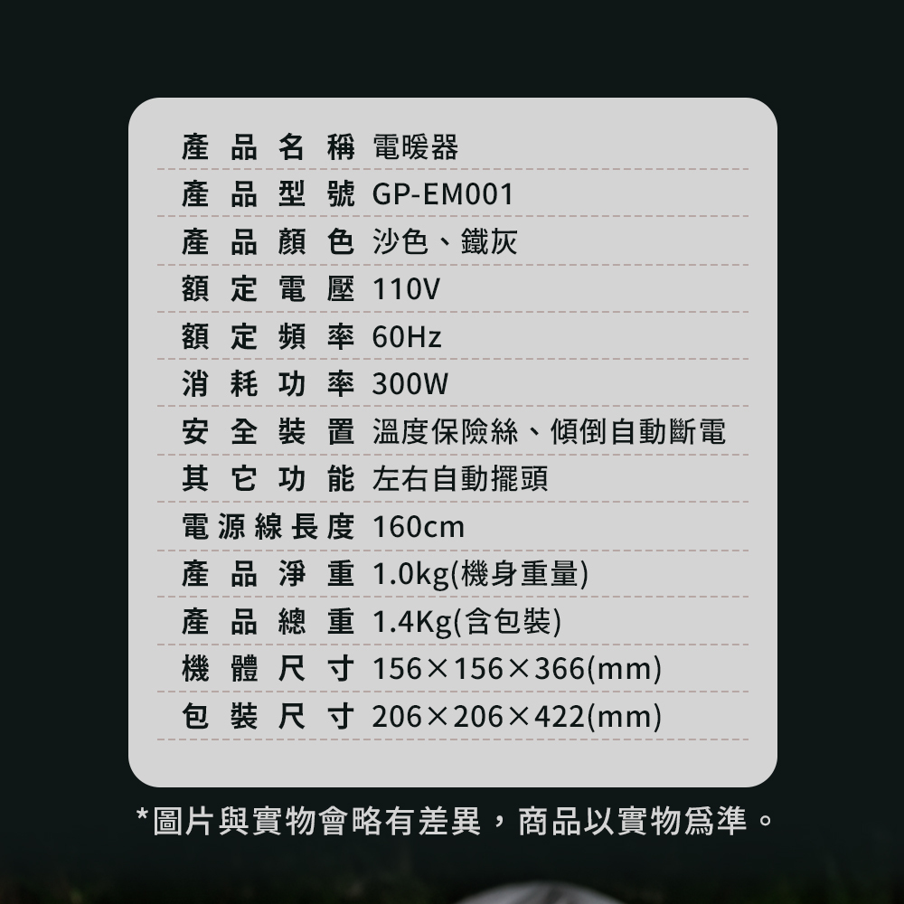 產品內容:電暖器*1 / 使用說明書*1