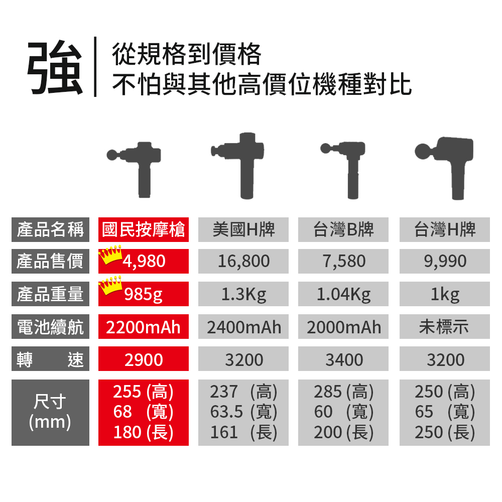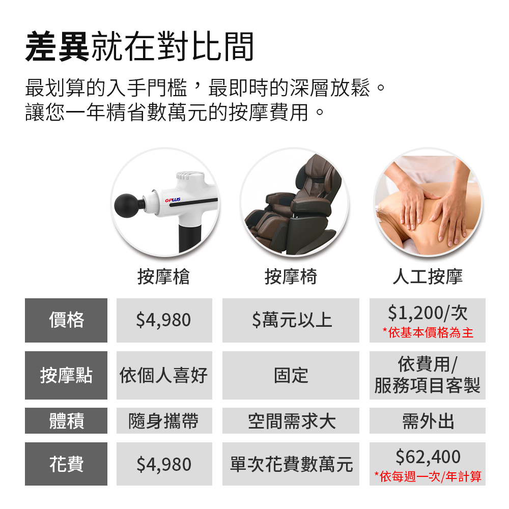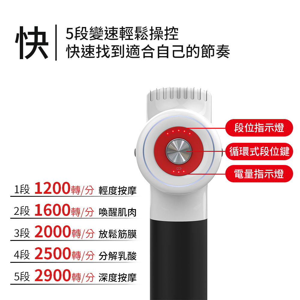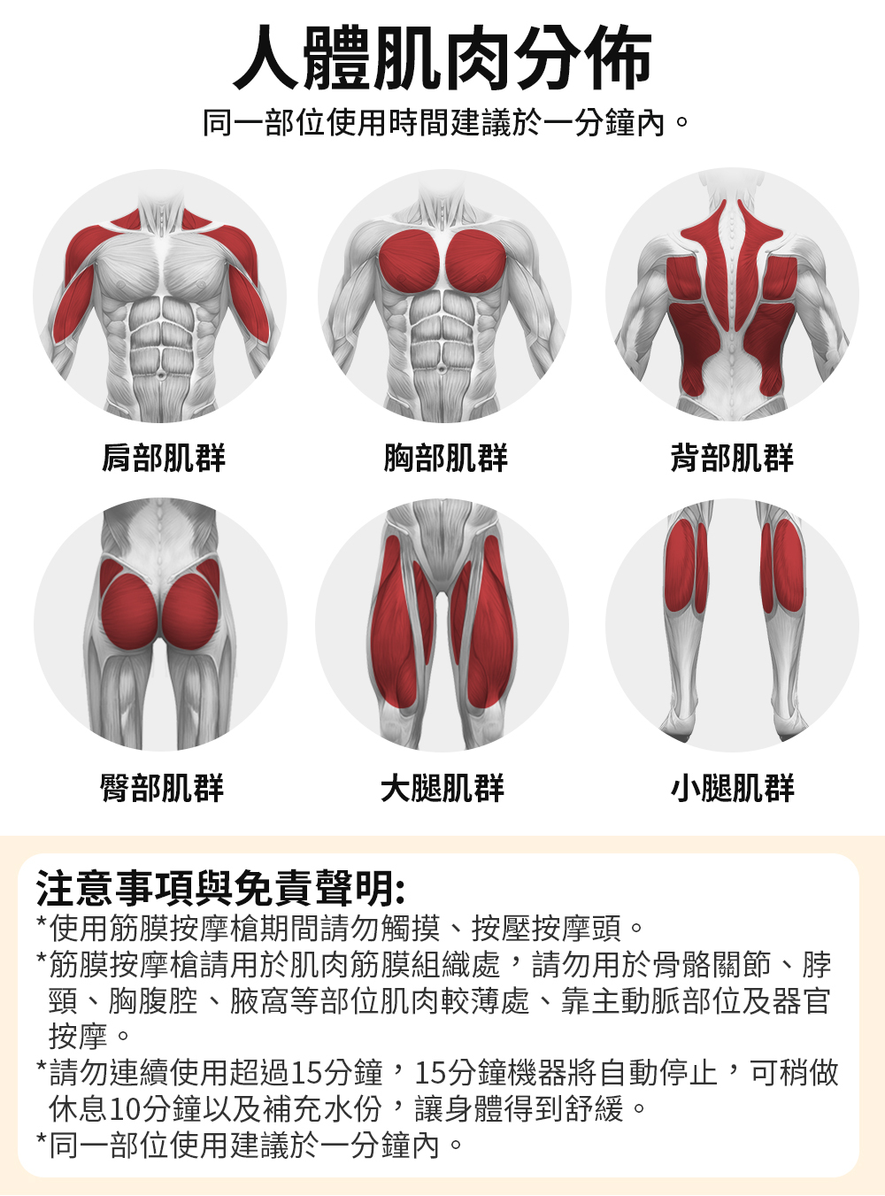 產品內容:按摩槍*1/按摩頭*4/充電器*1/使用說明書*1/收納盒*1