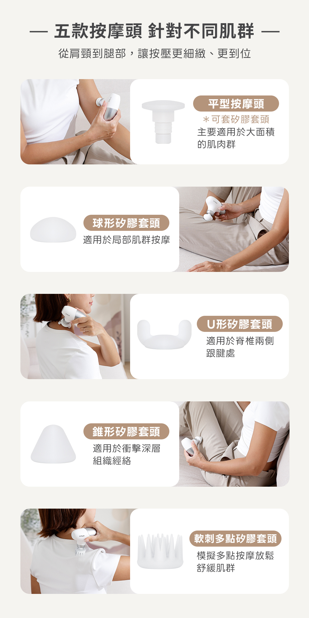 .五款按摩頭,細膩照顧全身的肌肉