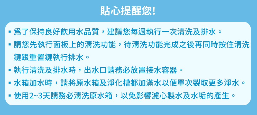產品內容:主機*1/接水盒*1/水箱*1/RO濾心*1/PAC濾心*1/CF濾心*1/說明書*1