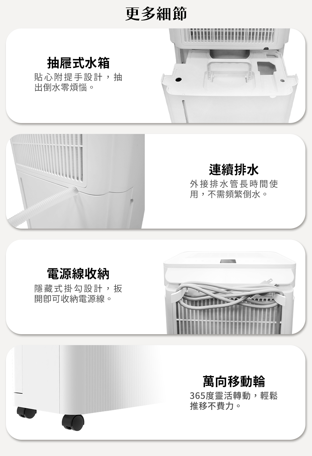 .送風模式 | 連續排水 | 萬向滾輪