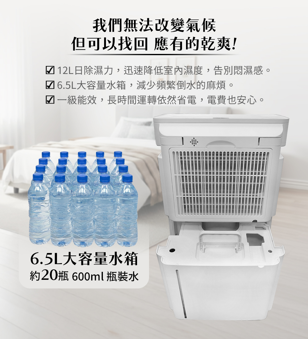 .12L/日除濕能力 | 6.5L大水箱